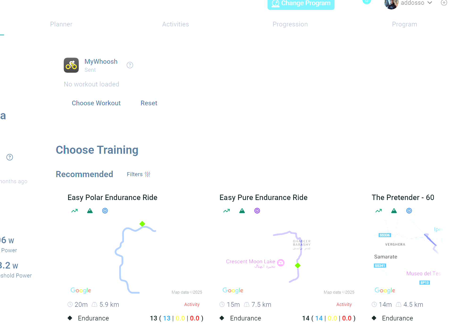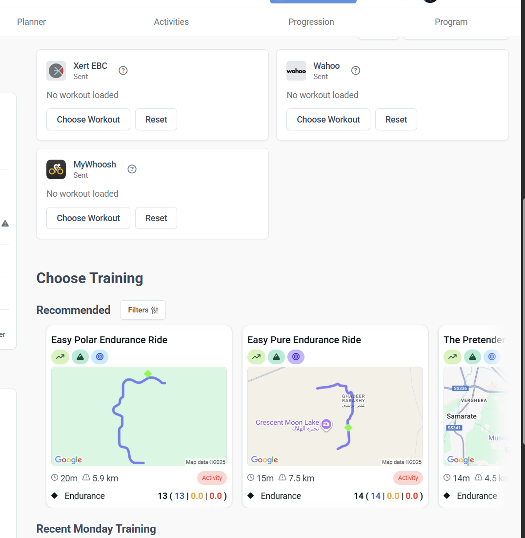 I would say then: why not showing directly the recommended workouts in the first page? I’m missing something that makes my interaction with the tool “easy”: just enter the main page, select the training the platform wants me to do, send it to my Virtual ride platform and start training.