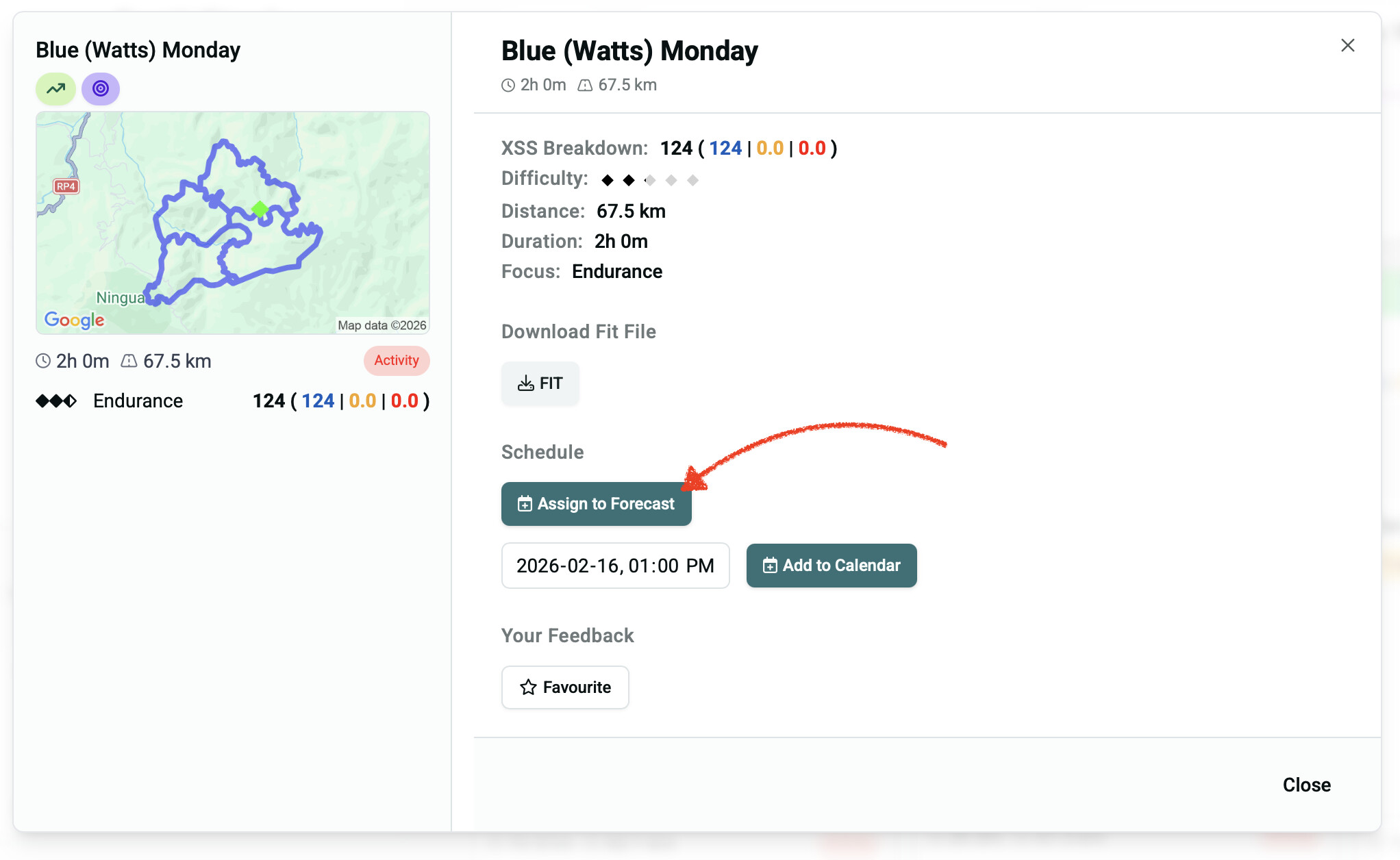 If you’re on a Forecast AI plan, you can assign that activity to the day’s placeholder (effectively making it your planned training for the day) by clicking the ‘Assign to Forecast’ option: