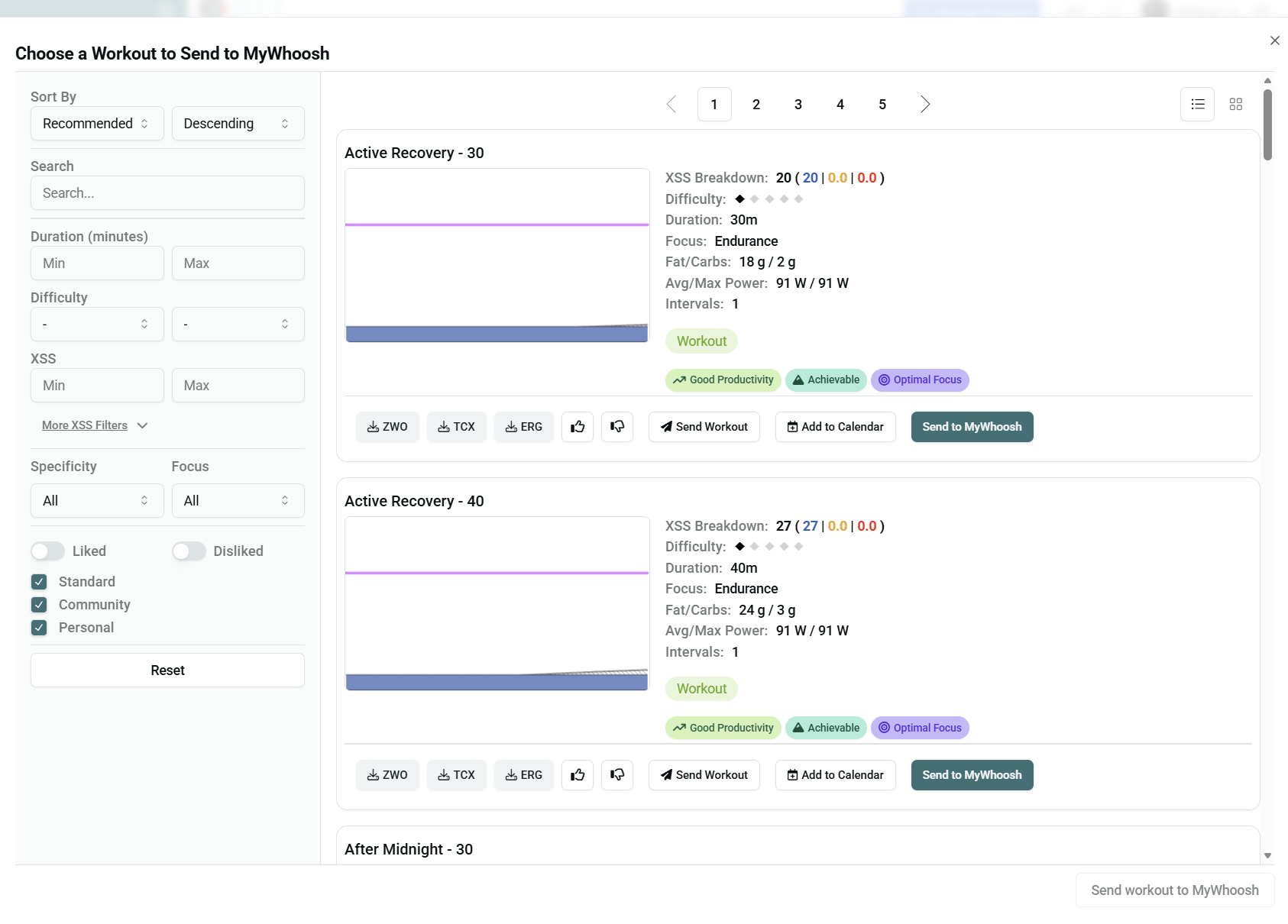 here i’m trying to select that specific training and sending it to my myWhoosh but the workout does not show up in the list. How can i do in a quick way without adding first to the calender through the schedule?