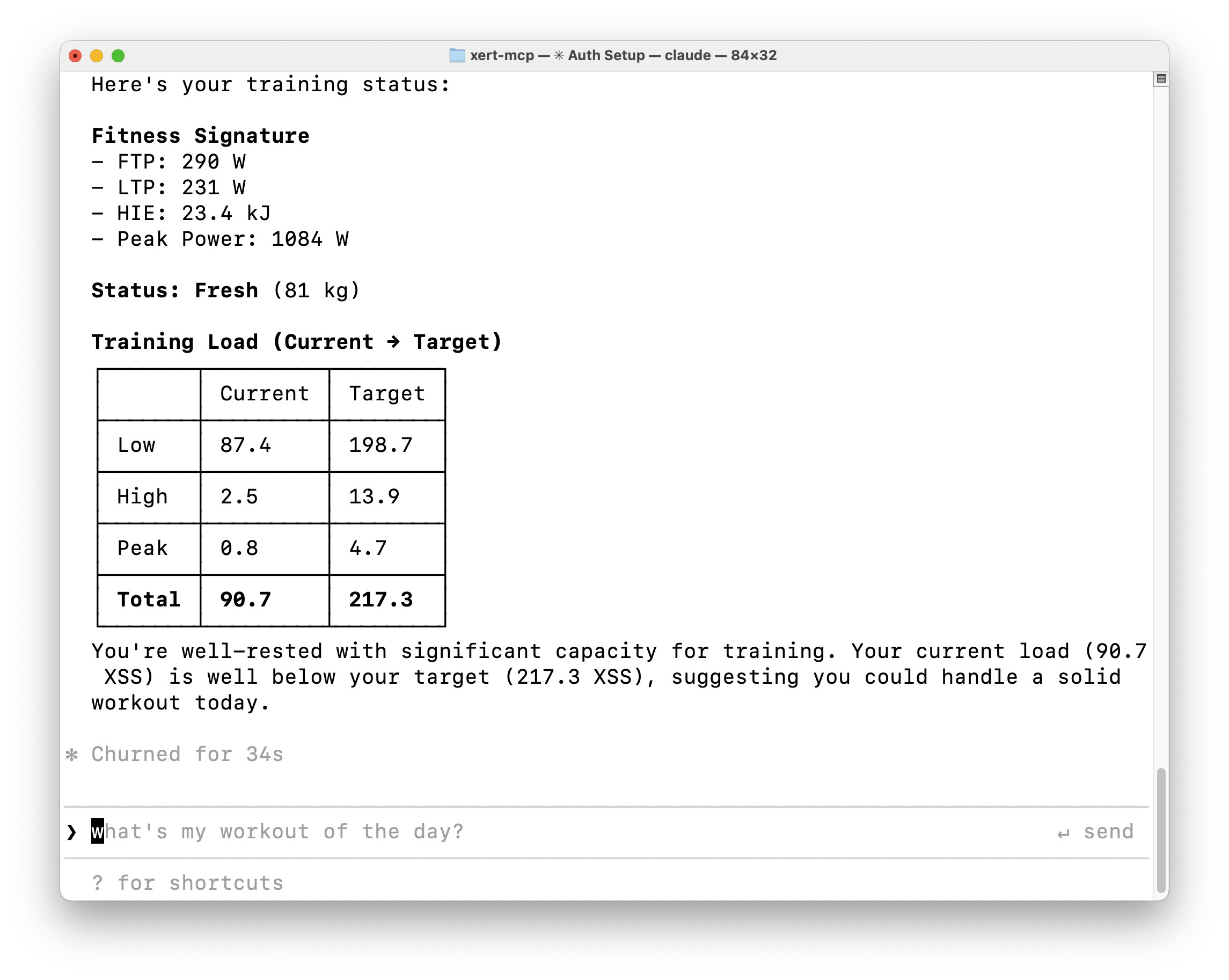 Claude AI to the XERT API. This allows you to interact with your XERT data