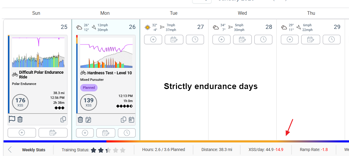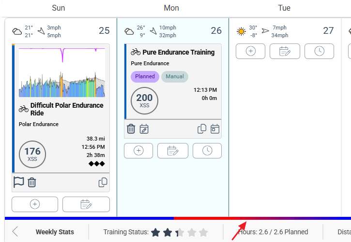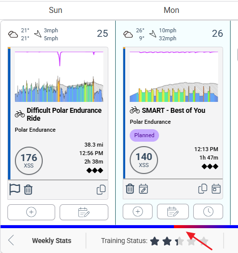For example, if you insert an extra-long LIT ride or higher intensity HIT workout than you’ve normally done in the recent past, that will trigger the extended recovery pattern (red to yellow to blue).