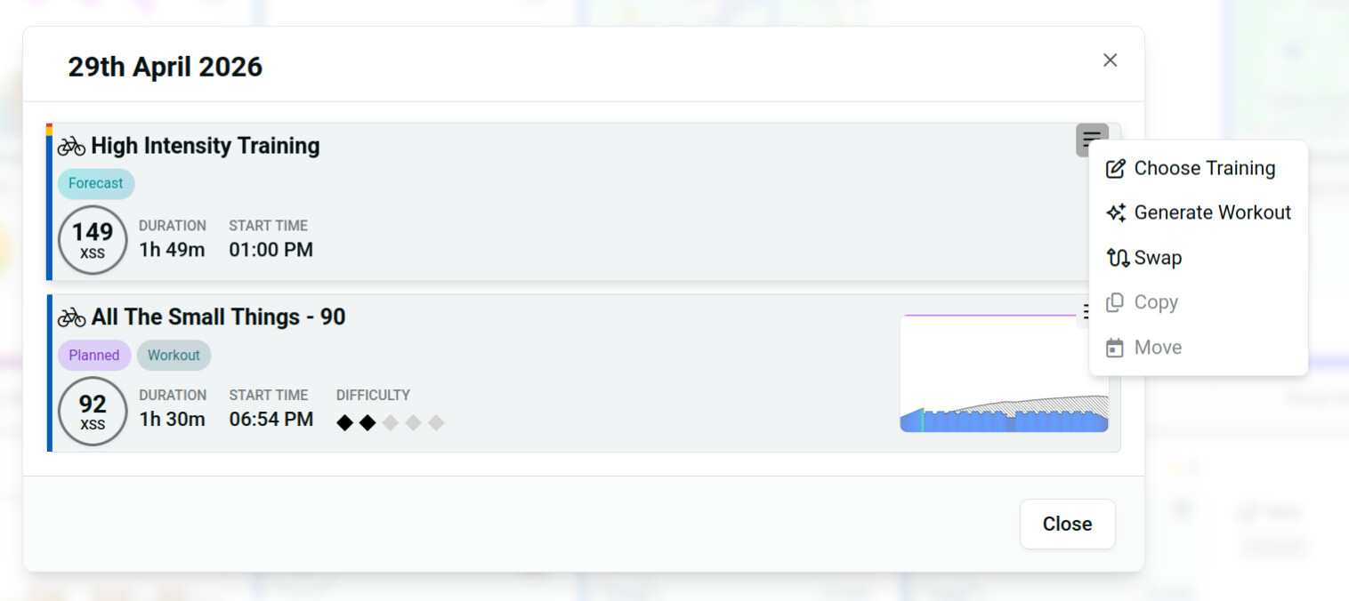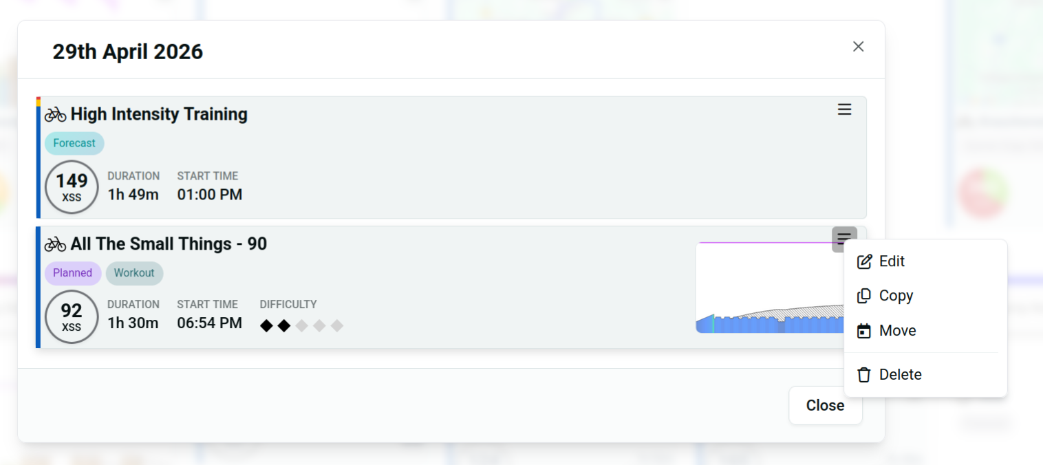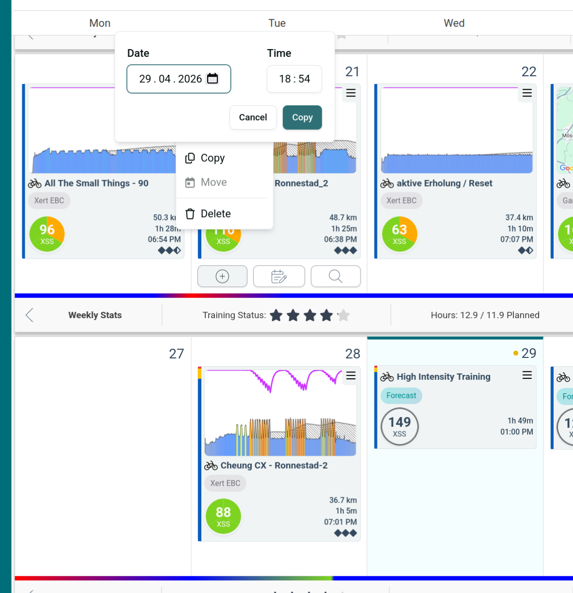Example: I want to ride the unit from April 20th today, April 29th. I go to Select - Copy - enter the date April 29th, press Copy; then I have two activities on April 29th. If I only want to ride the unit from April 20th, I can’t delete the activity suggested by XERT?!