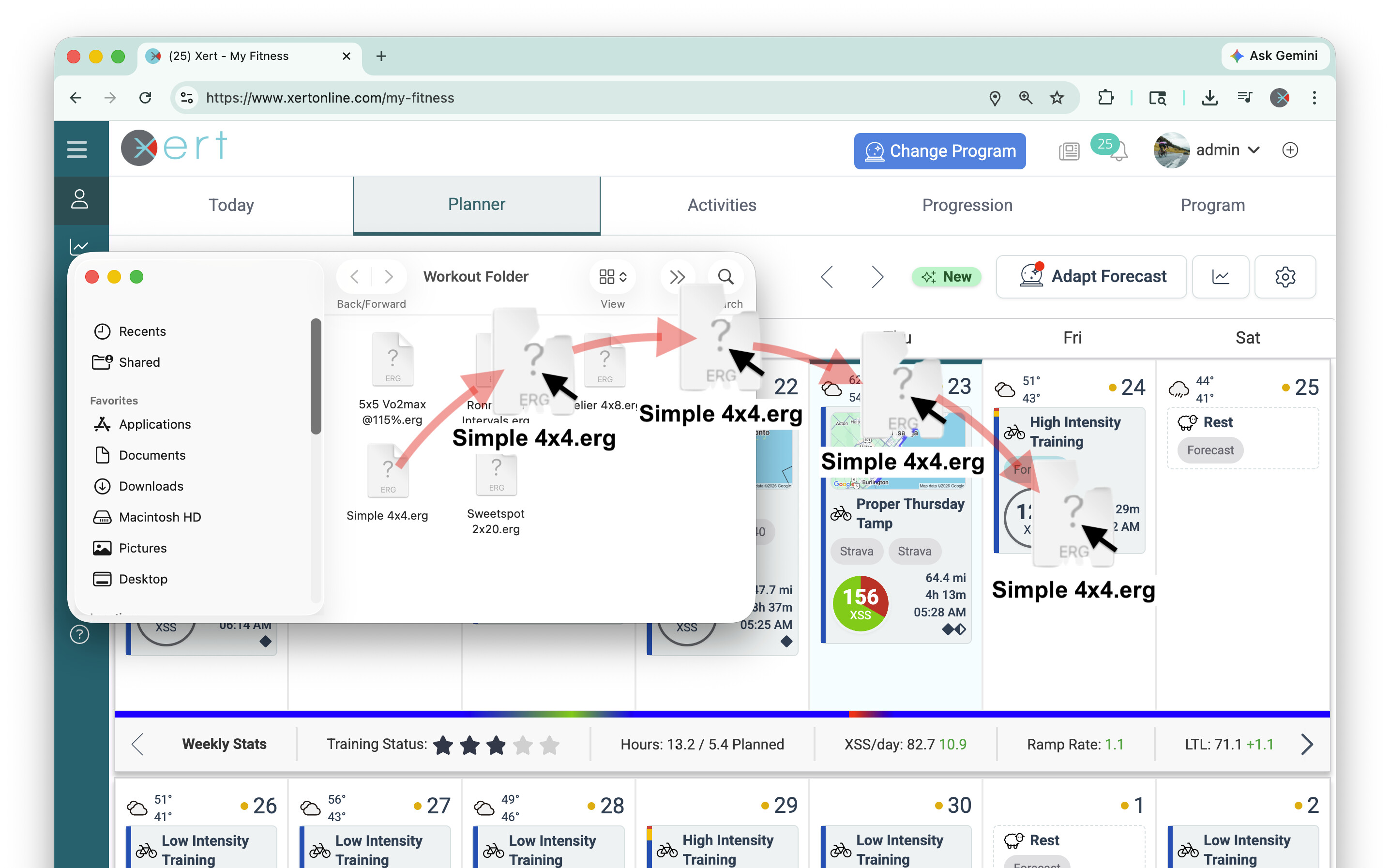 Transfering your training plan to Xert is now super-simple. Export your workouts as files and simply drag-and-drop them onto the Planner for quick-and-easy planning. Take advantage of Magic Buckets, Zwift/Rouvy/MyWhoosh integrations or use Xert EBC to execute the training you have planned on other systems.