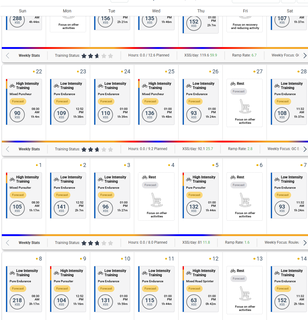 I like to do my long ride on Sunday so I have set my availability for that day at 4 hours (‘fixed’). However, the Forecast AI usually only gives me a 1 hour workout on Sunday. I would like to force it to give me a longer workout, while still letting it decide what intensity it should be. So I can’t use the manual option to plan a 4 hour ride, because then I also have to pick an intensity myself.