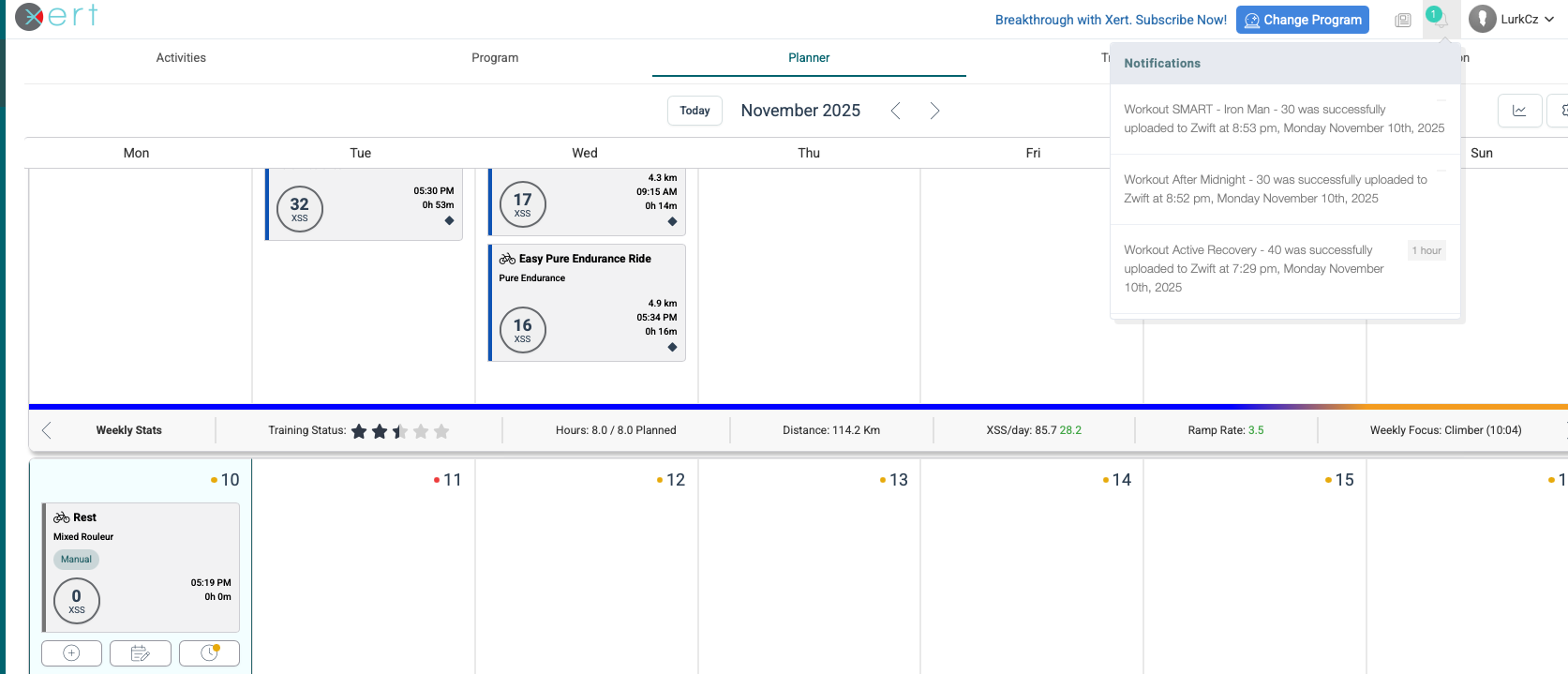 Option A: Leave the day blank on the Planner. No workout is selected. The XMB app will fetch whatever XSS ratio is recommended for that day. What I call top-level advice.
