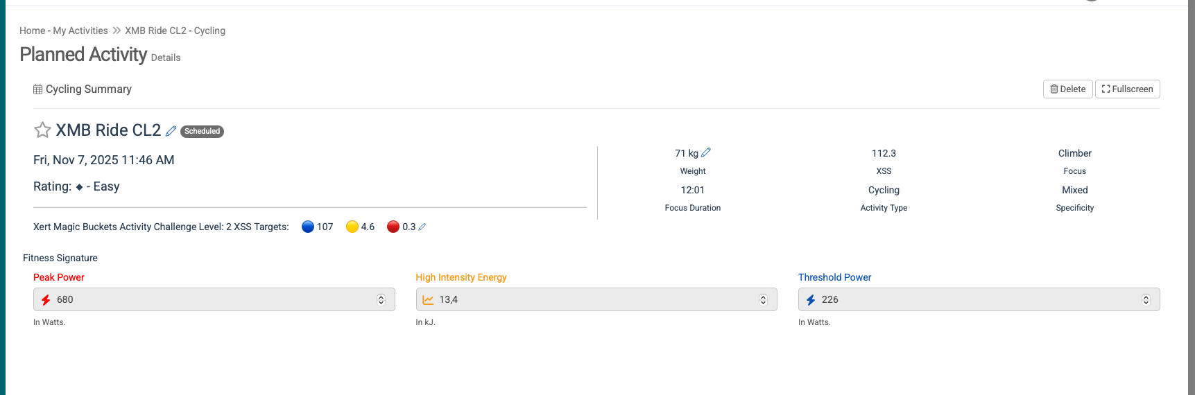 Option C: Use the Magic Buckets tab to generate a simple workout (like I did). The entry on the Training page will be labeled XMB WORKOUT CLx. The workout can be sent to a compatible head unit and ridden as a structured workout using the head unit’s native workout player.