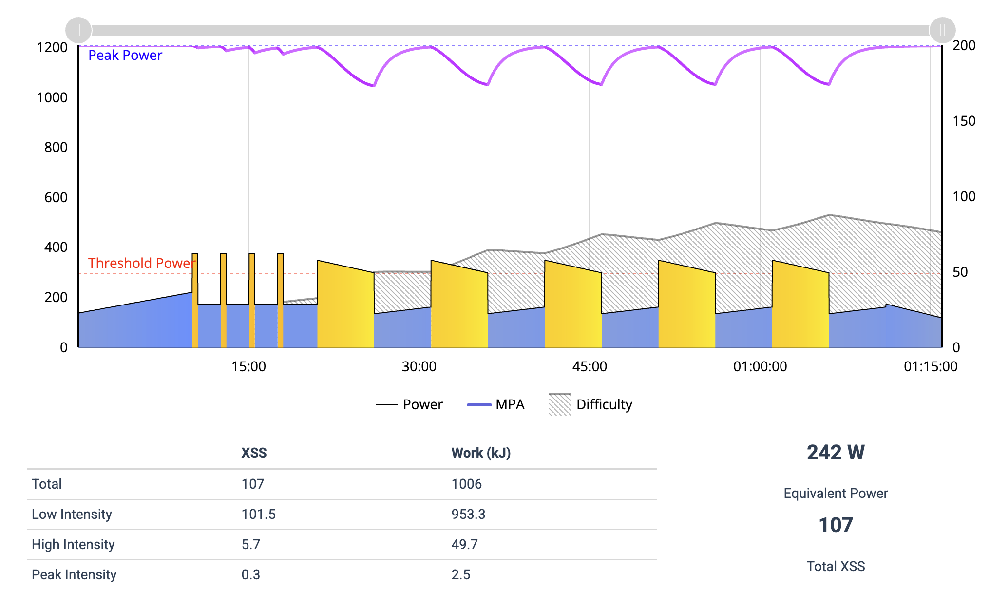 Note how the previous conversion used the same start and end power values which ended up making the workout harder and with more XSS overall. With the new conversion method, the start and end power targets change to allow the XSS values line up more closely with the existing workout on Xert making the workout easier to do and better for your training.