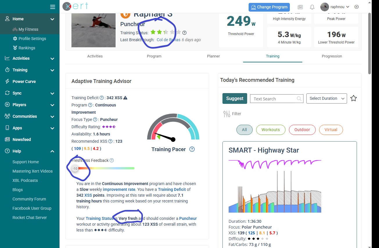 J’ai rafraichi la page mais je reçois toujours une recommandation pour un entrainement intensif alors que je suis fatigué aujourd’hui et j’ai placé le curseur à -10