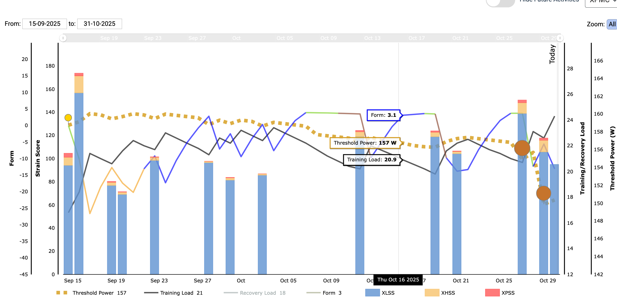 When a workout is scheduled on the Planner XMB picks up the XSS target from that workout’s specs instead.