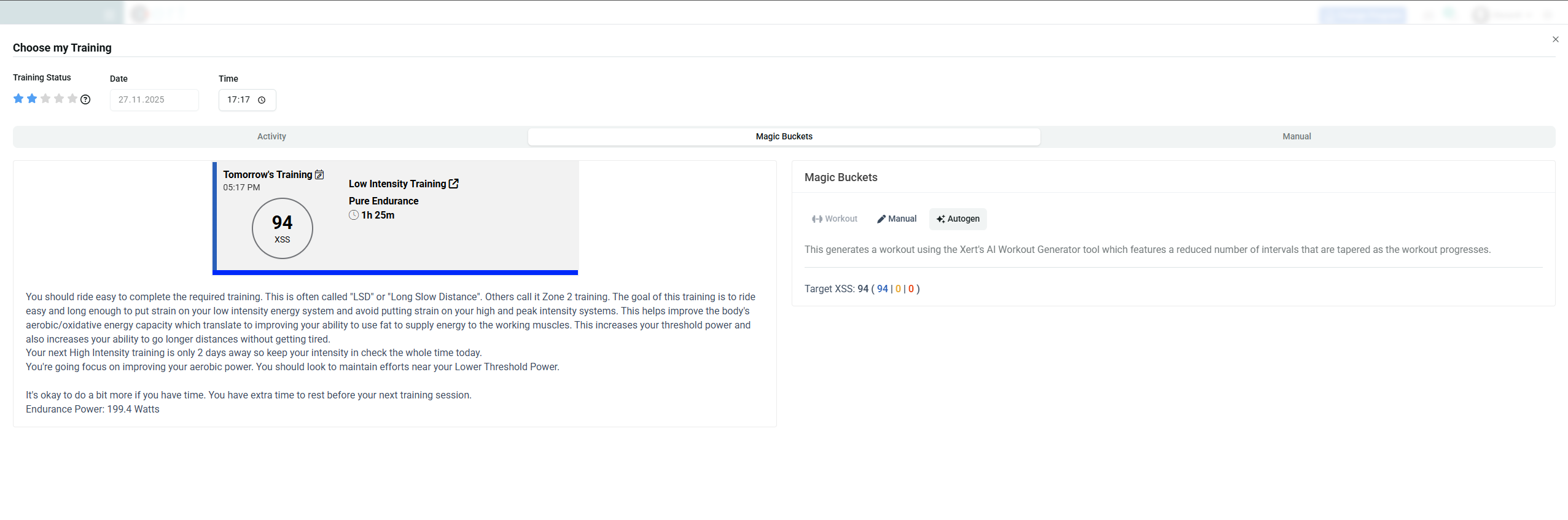 So, problem solved I guess. Just wanted start messing around with Forecast AI and what sessions it genrates. I actually don’t mind riding zone2 / zone3 in ERG Mode. I am a bit bored by COCO at the moment ^^