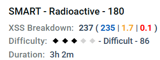 That would be rated Moderate Difficulty (203/3hr = 68 XSS/hr = 2.5 diamonds).