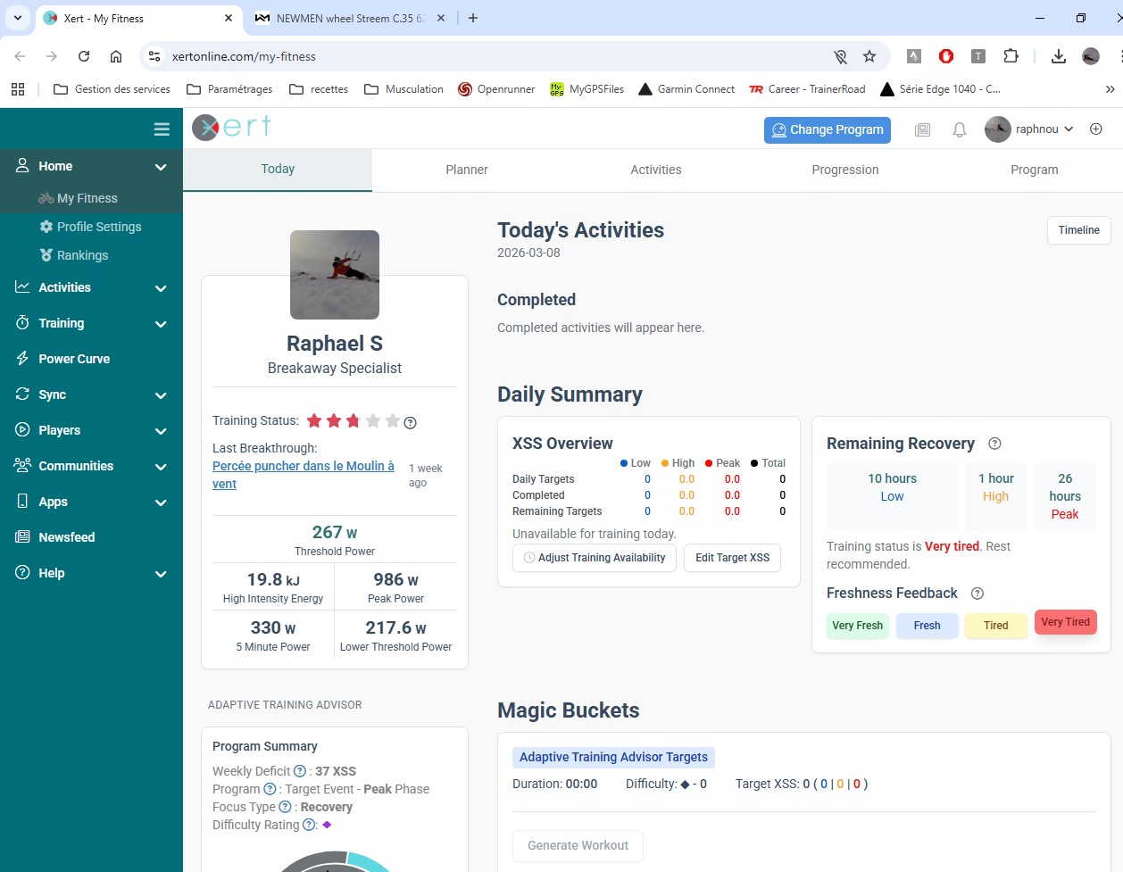 Low, High, and Peak Recovery Load in Xert represent how much recovery your body needs from the three different energy systems you’ve recently stressed. Each one decays at its own rate and influences your Training Status (Fresh / Tired / Very Tired)