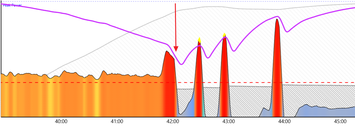 Was that a natural failure point at the end of the charge or did you stop pedaling as it leveled out then added the three sprint surges for kicks?