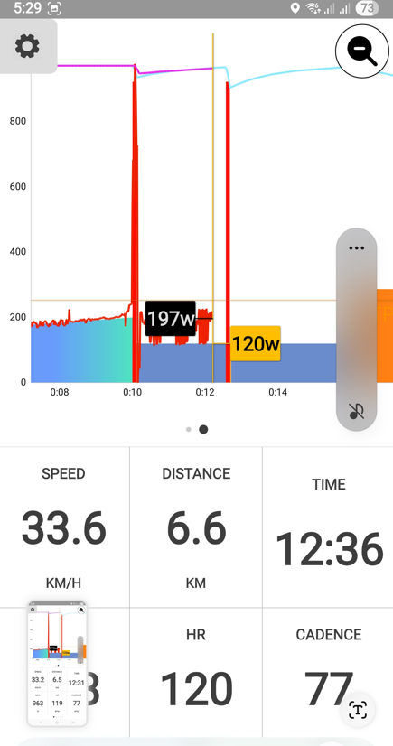 During the smart ‘rest’ intervals the trainer resistance fluctuates intermittently, rather than let me rest at 120 watts, it pushes the resistance up to near 200 watts suddenly before releasing again and it does this repeatedly. In the screenshots below you can see the power variance during the resting intervals. There were also some issues during the high intensity intervals as you can see below. The warm up interval works fine, but problems start after the first slope mode sprint interval.