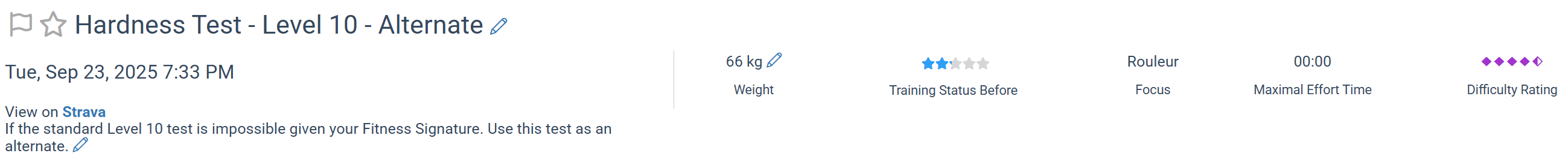 Great question! Matching your training status stars to the workout difficulty diamonds is how XATA used to function, and I still find it a helpful rule-of-thumb. If you’re cruising through workouts rated well above your current star level, it might be worth checking if your signature is understated or try and push for a breakthrough. Some athletes are also able to mentally suffer more than others…. I’m not the most mentally resilient rider myself. I think I quit on myself the last time I tried Hardness Test 11.