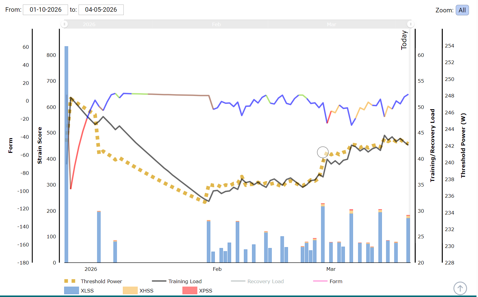 You can also swipe to the buckets page to see how you’re doing. If a little short you can toss in a high/peak interval or two (in Slope mode) during Cooldown to top off any missing points.