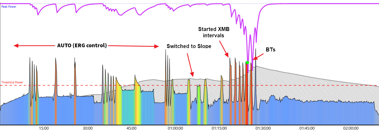 Here’s an example (Radar Love BTW) where I started the workout in AUTO, decided midway I had done enough structure and switched to Slope mode with XMB to fill the remaining buckets: