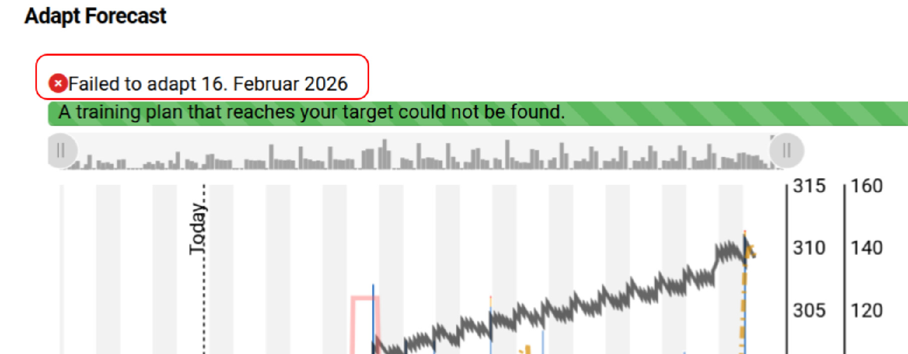 bist hier hin alles ok- Training gemacht usw.- es erscheint ein roter Pkt oben rechts im Adapt Forcast; wenn ich das dann ausführe kommt: ( und das passiert immer wieder und in letzter Zeit immer öfter?)