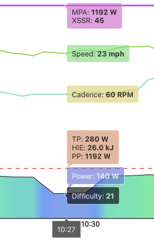 Attached is a screenshot from wko5 showing the values, and the view from xert.