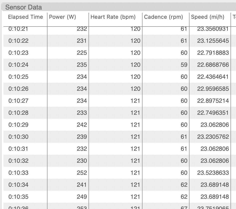 It’s from a powertap on a bike on rollers recorded directly to the garmin, not from zwift. 4 seconds of the same power number, 5 seconds at same cadence does not seem to be implausible at all. For 20 seconds here the cadence is within 1 or 2 rpm I’m pretty sure my outside rides are not like this but indoors why would this be flagged as bad data? I’m just trying to understand the logic here, not complaining.