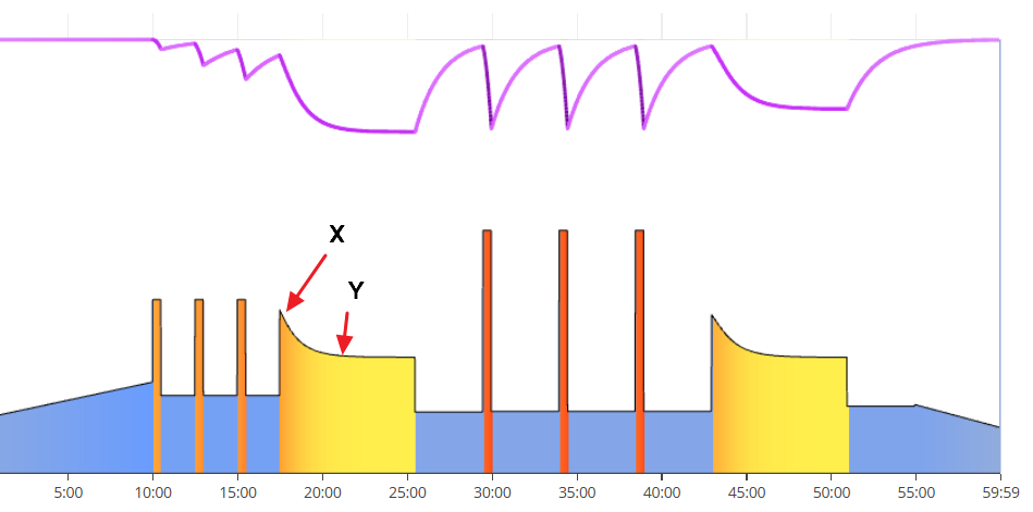 All I need know is X and Y to closely mimic that hard start interval under my control tapering down to Y watts about a third of the way in.